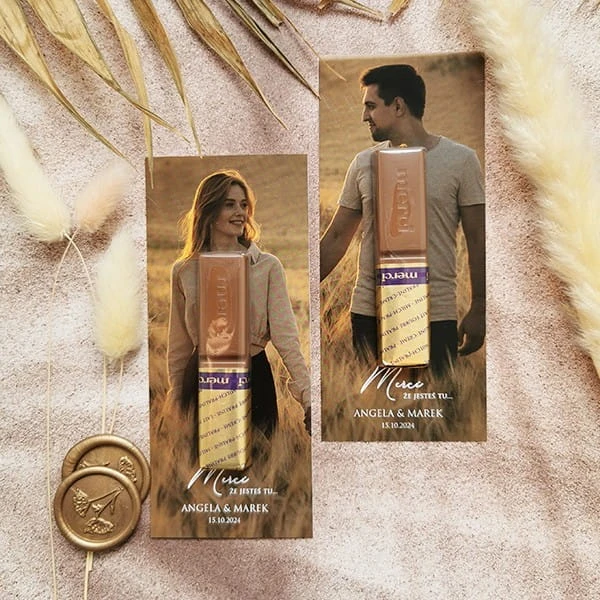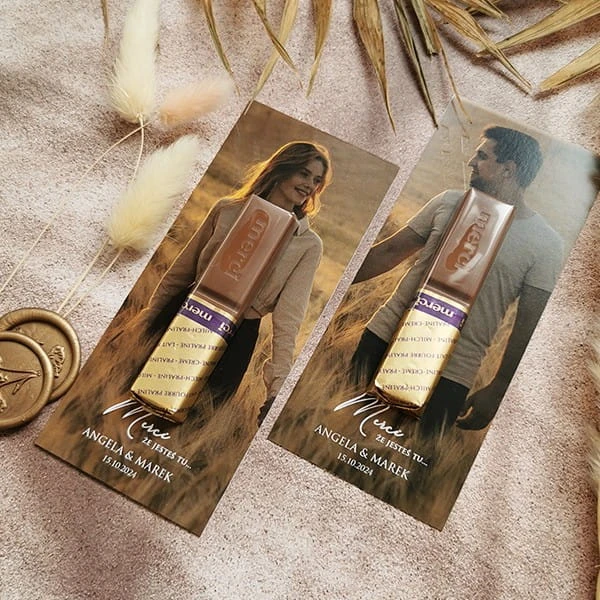 Upominki dla gości weselnych w formie karteczki z czekoladką to świetne rozwiązanie, aby podziękować swoim gościom za przybycie.