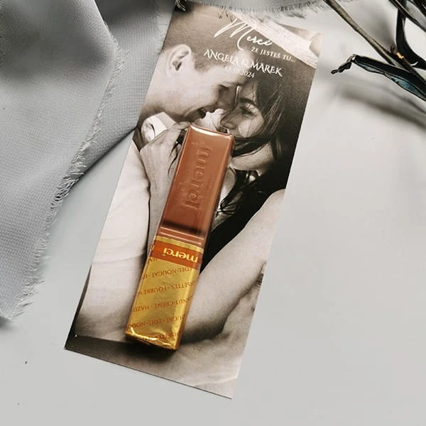 Upominki dla gości weselnych w formie karteczki z czekoladką to świetne rozwiązanie, aby podziękować swoim gościom za przybycie.