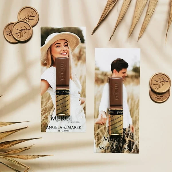 Upominki dla gości weselnych w formie karteczki z czekoladką to świetne rozwiązanie, aby podziękować swoim gościom za przybycie.