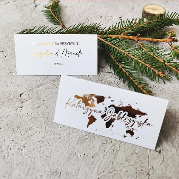 Złocone Winietki Wizytówki Ślubne Z motywem Podróżniczym Win PASZ01 PASZ02 PASZ03