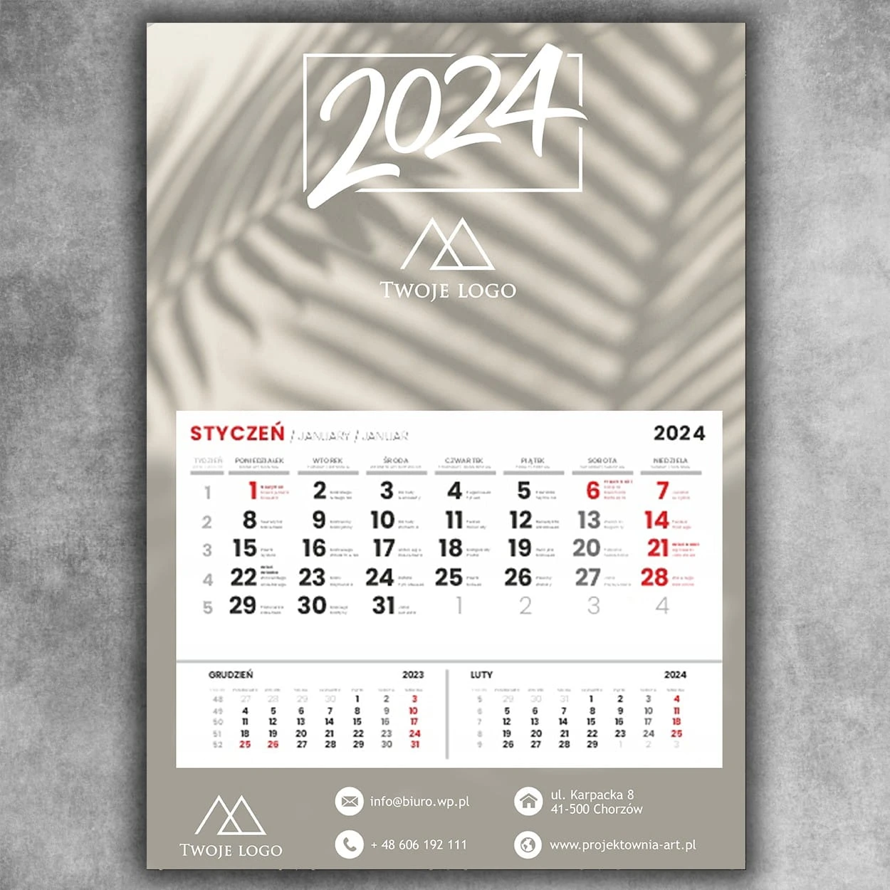 - Personalizacja: Na kalendarzu umieszczamy Twoje logo lub grafikę oraz dowolną treść, dzięki czemu staje się on doskonałym nośnikiem Twojej marki. To doskonały sposób na budowanie świadomości marki i promocję Twojego biznesu.